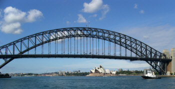 ein kurzes Stück über die Brücke und wieder zurück. 07.05.05 Am Nächsten Tag sind wir nochmal zum Darling Harbour und gegangen und haben uns dort massieren lassen beim Rückweg haben wir uns dann noch den Perry Markt angeschaut und uns eine Tasche gekauft die dann später von Mel UGLY BAG getauft wurde ;-) Dann ging es zum erstenmal mit dem GREYHOUND Bus auf nach Canberra. |
