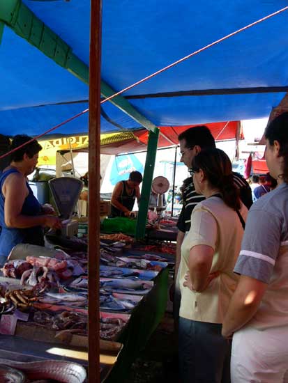 Vormittag ein Fischmarkt statt (am Sonntag kaufen hier auch viele Einheimische